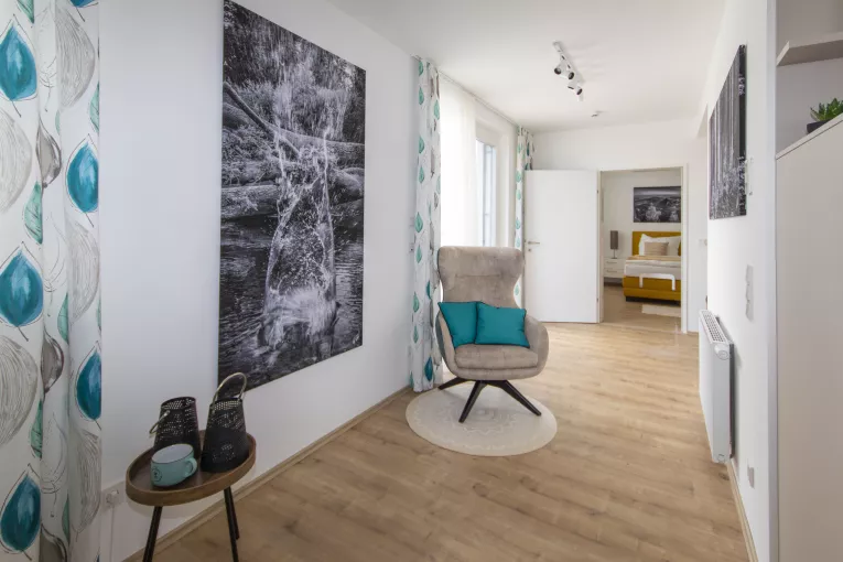 Die "Betreubaren Wohnungen" befindet sich im Dachgeschoss und verfügen über 1 Zimmer, Bad mit WC, Vorraum und einer Wohnküche mit angrenzender Dachterrasse.