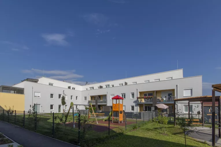 Am Stadtrand, in der Kunzgasse 2-4 ist man im Grünen und in der Stadt zugleich. Nur wenige Minuten von der Innenstadt entfernt entstanden 31 geförderte Wohnungen. Jede Wohneinheit ist mit einem Einlagerungsraum ausgestattet und zudem gibt es einen Abstellplatz in der Tiefgarage. In beiden Blöcken ist ein Aufzug vorhanden.