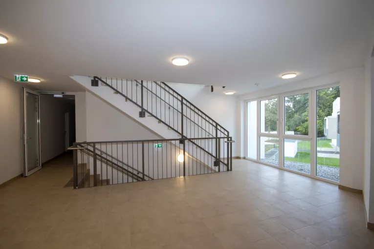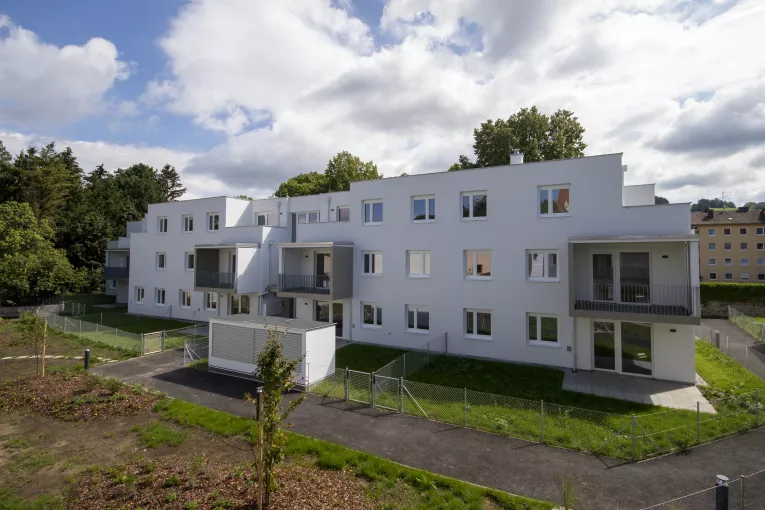 In diese wunderschöne Landschaft hat gebös eine moderne Wohnhausanlage in der Hammergasse 3-5 errichtet. Sie besteht aus insgesamt 51 geförderten Wohnungen aufgeteilt auf 2 Stiegen. Alle Wohnungen verfügen über Freiflächen in Form einer Terrasse mit Garten, einer Loggia bzw. Balkon oder einer Dachterrasse sowie einem PKW-Stellplatz in der hauseigenen Tiefgarage.