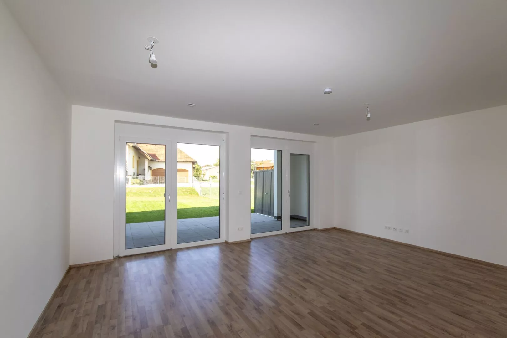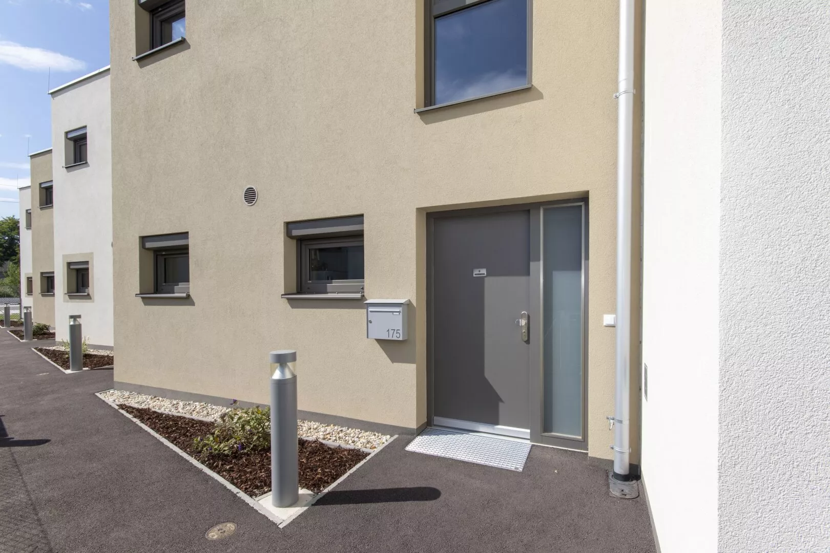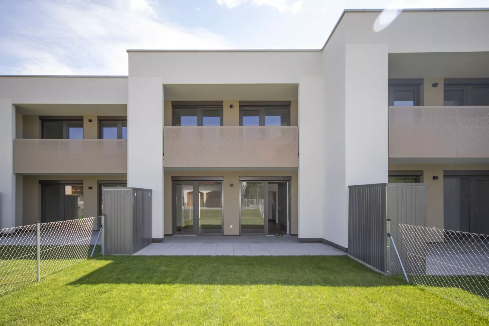 Fliesen, Laminat, Fußbodenheizung, Wohnküche / offene Küche, Westbalkon / -terrasse, Bad mit Fenster, Badewanne, Dusche, Parkplatz, Luftwärmepumpe, Abstellraum, Getrennte Toiletten, Rollladen, Flachdach, Massiv, Schlüsselfertig mit Bodenplatte, Kinderspielplatz, Kunststofffenster, Bad mit WC, kontrollierte Wohnraumlüftung, Grünblick, Photovoltaik Anlage