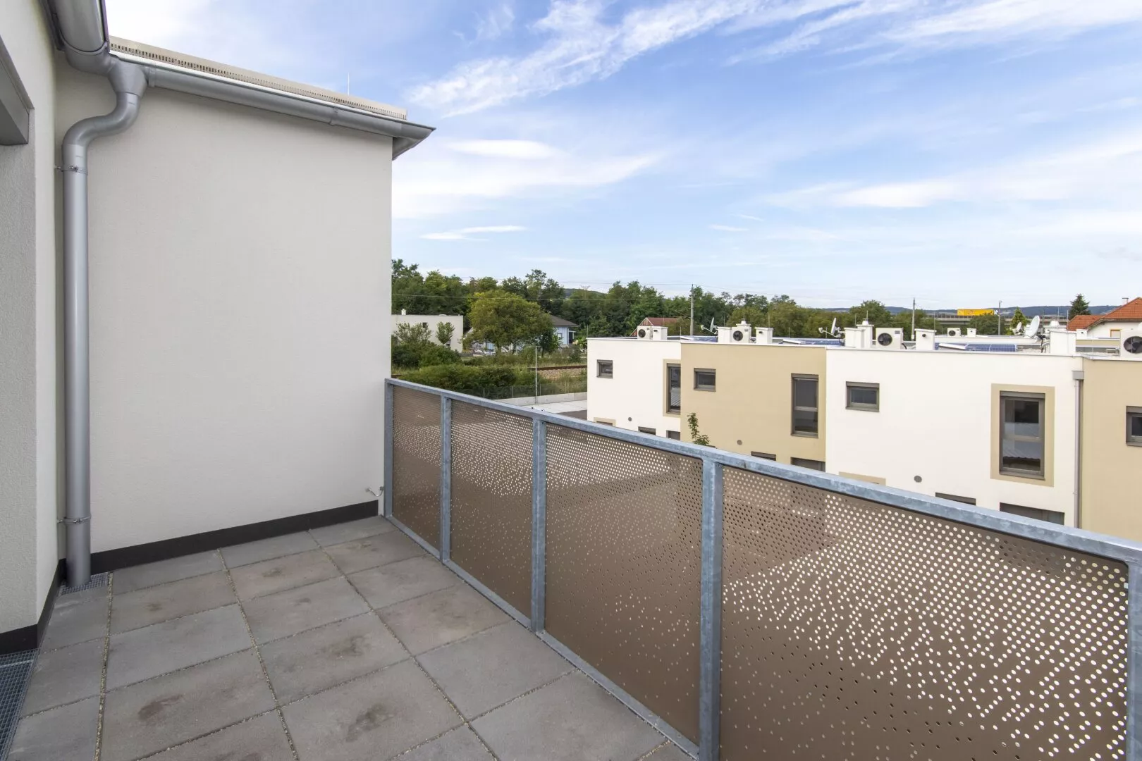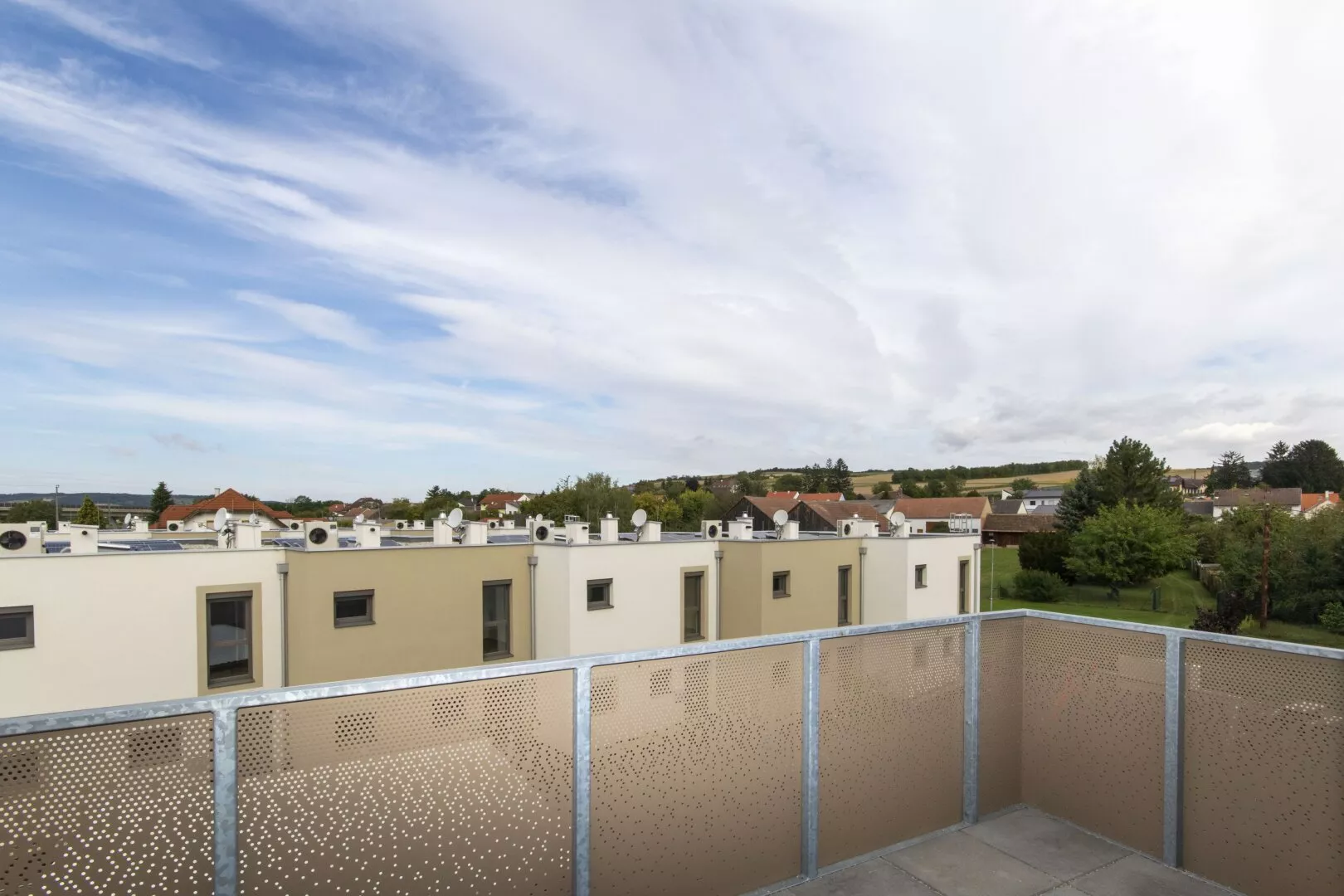Fliesen, Laminat, Fußbodenheizung, Wohnküche / offene Küche, Personenaufzug, Westbalkon / -terrasse, Badewanne, Parkplatz, Luftwärmepumpe, Fahrradraum, Abstellraum, Außenliegender Sonnenschutz, Getrennte Toiletten, Rollladen, Flachdach, Massiv, Schlüsselfertig mit Keller, Doppel- / Mehrfachverglasung, Kinderspielplatz, kontrollierte Wohnraumlüftung, Grünblick, Photovoltaik Anlage