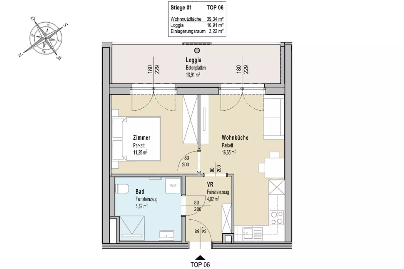 Zur Wohnung gehört ein Einlagerungsraum und ein Autoabstellplatz (€ 33,00/Monat) im Freien.
