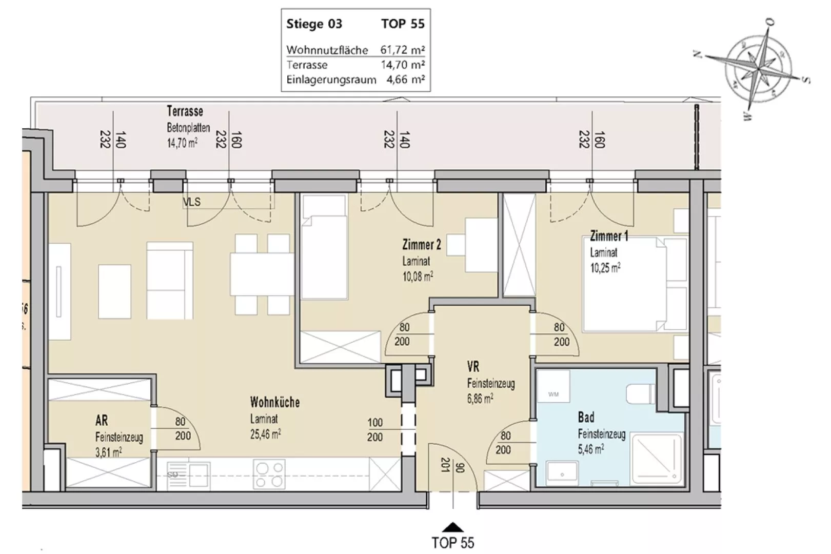 Freifinanzierte 3-Zimmer-Wohnung mit Dachterrasse in Hartberg.