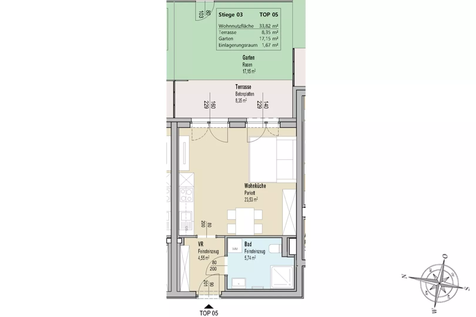 Zur Wohnung gehört ein Einlagerungsraum und ein Autoabstellplatz im Freien.