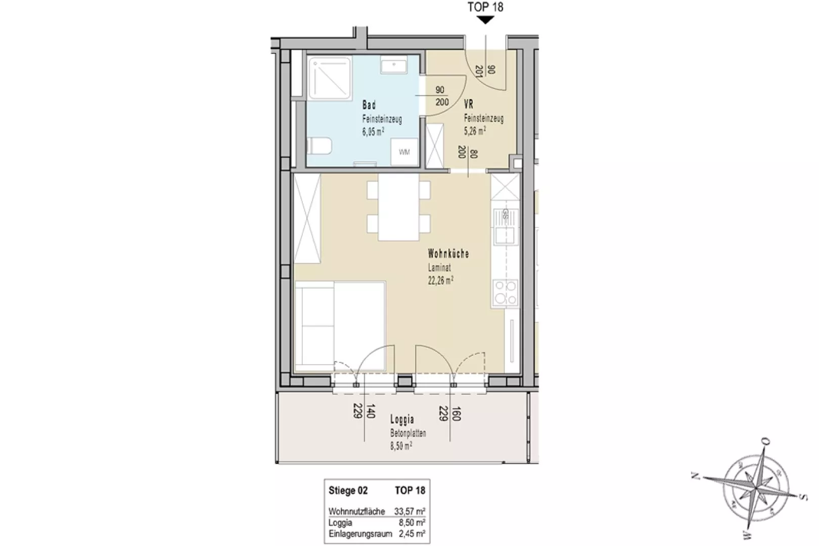 Zur Wohnung gehört ein Einlagerungsraum und ein Autoabstellplatz im Freien.