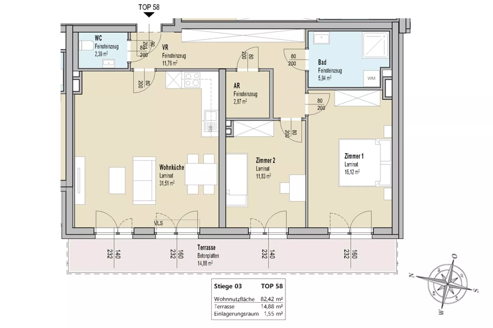 Zur Wohnung gehört ein Einlagerungsraum und ein Autoabstellplatz im Freien.