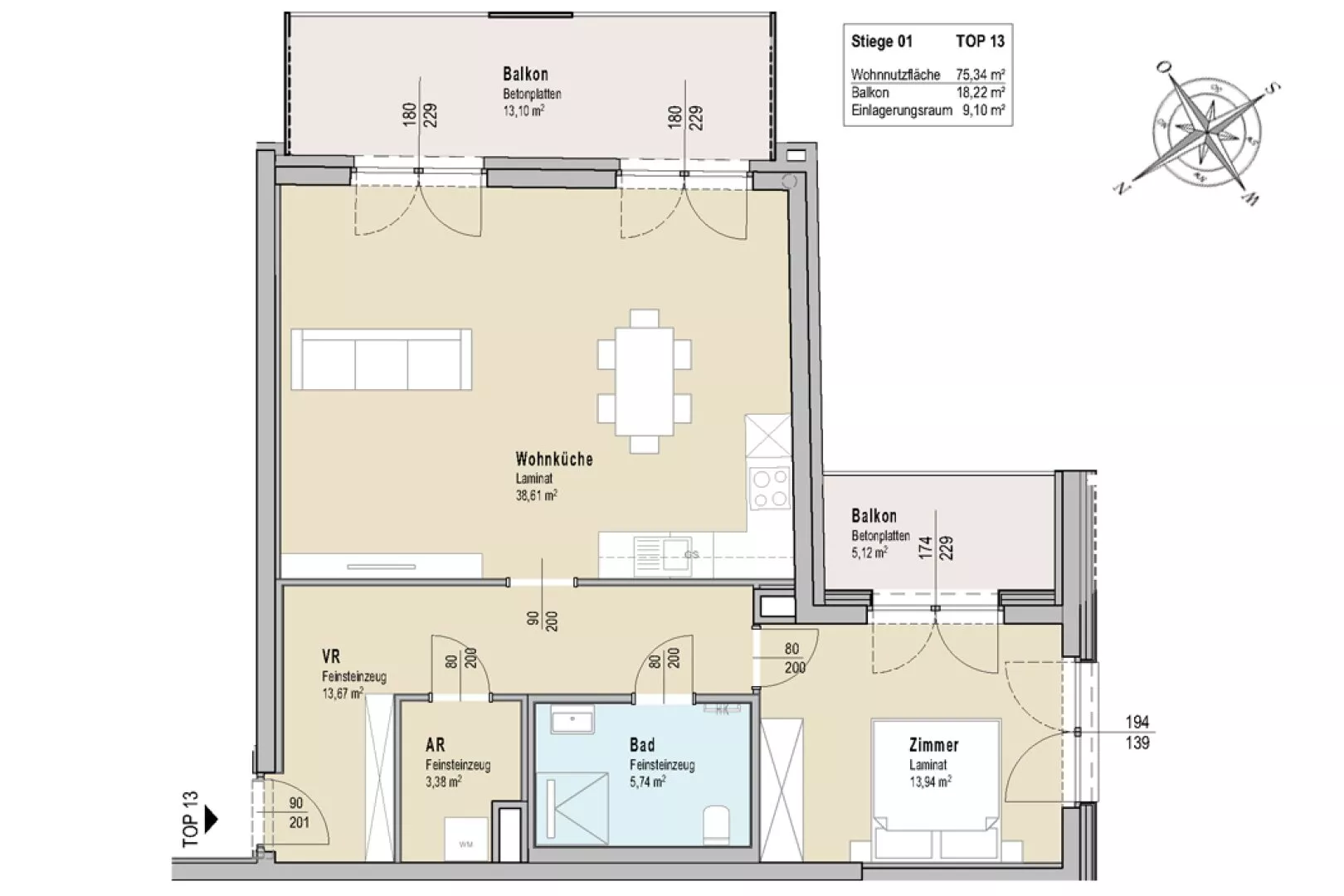 Zur Wohnung gehört ein Einlagerungsraum und ein Autoabstellplatz (€ 33,00/Monat) im Freien.