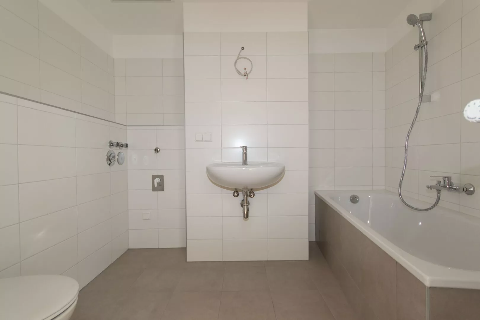 Fernwärme, Wohnküche / offene Küche, Personenaufzug, Südbalkon / -terrasse, Badewanne, Tiefgarage, Fernwärme, Fahrradraum, Abstellraum, Flachdach, Massiv, Kunststofffenster, Bad mit WC, kontrollierte Wohnraumlüftung