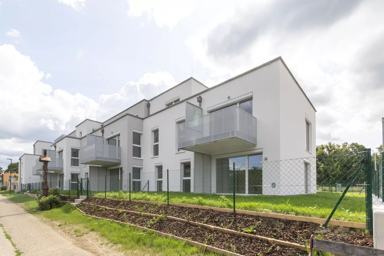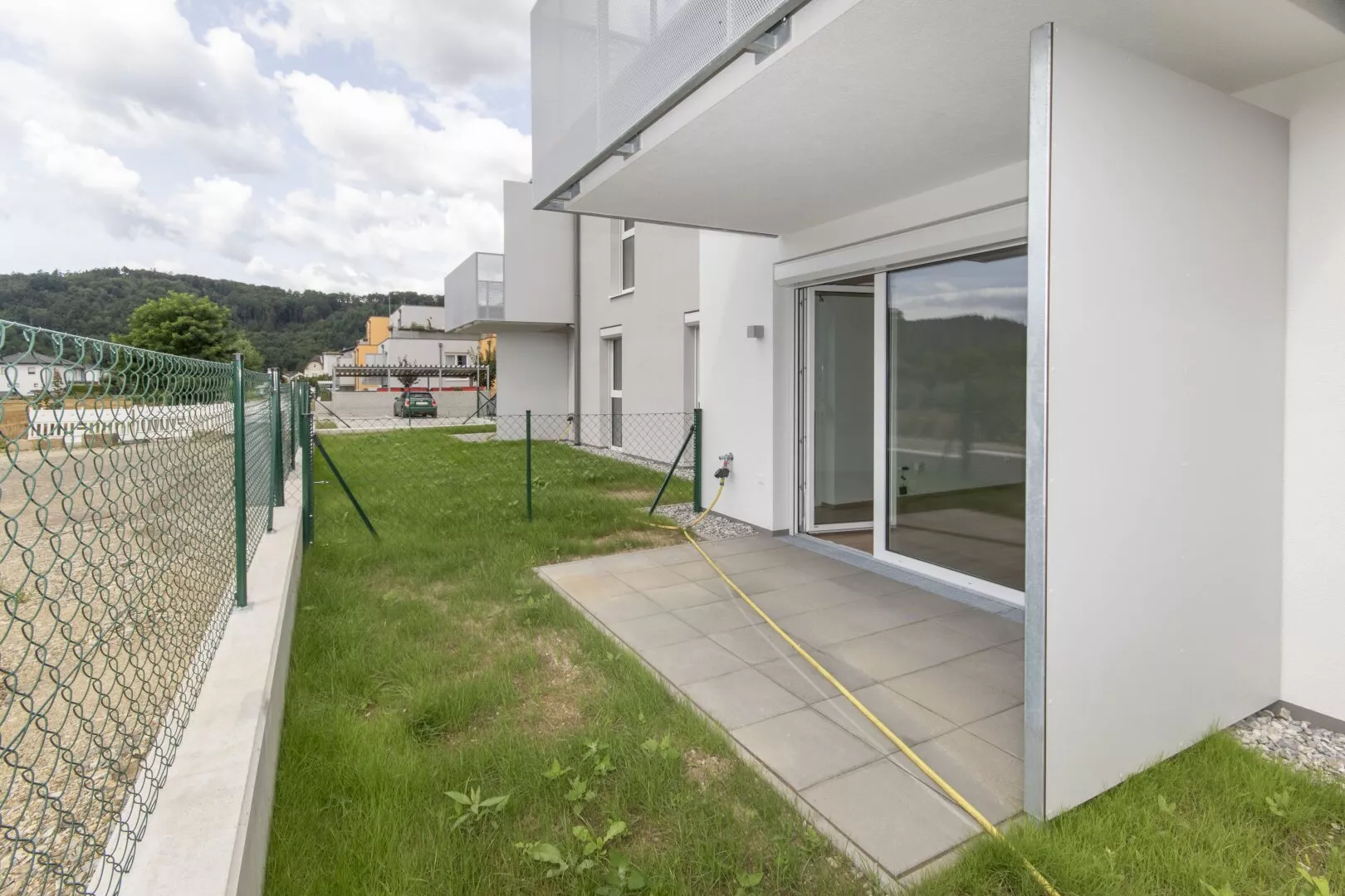 Fliesen, Laminat, Fußbodenheizung, Wohnküche / offene Küche, Personenaufzug, Südbalkon / -terrasse, Badewanne, Parkplatz, Luftwärmepumpe, Fahrradraum, Abstellraum, Außenliegender Sonnenschutz, Getrennte Toiletten, Rollladen, Flachdach, Massiv, Schlüsselfertig mit Keller, Doppel- / Mehrfachverglasung, Kunststofffenster, kontrollierte Wohnraumlüftung, Grünblick, Photovoltaik Anlage