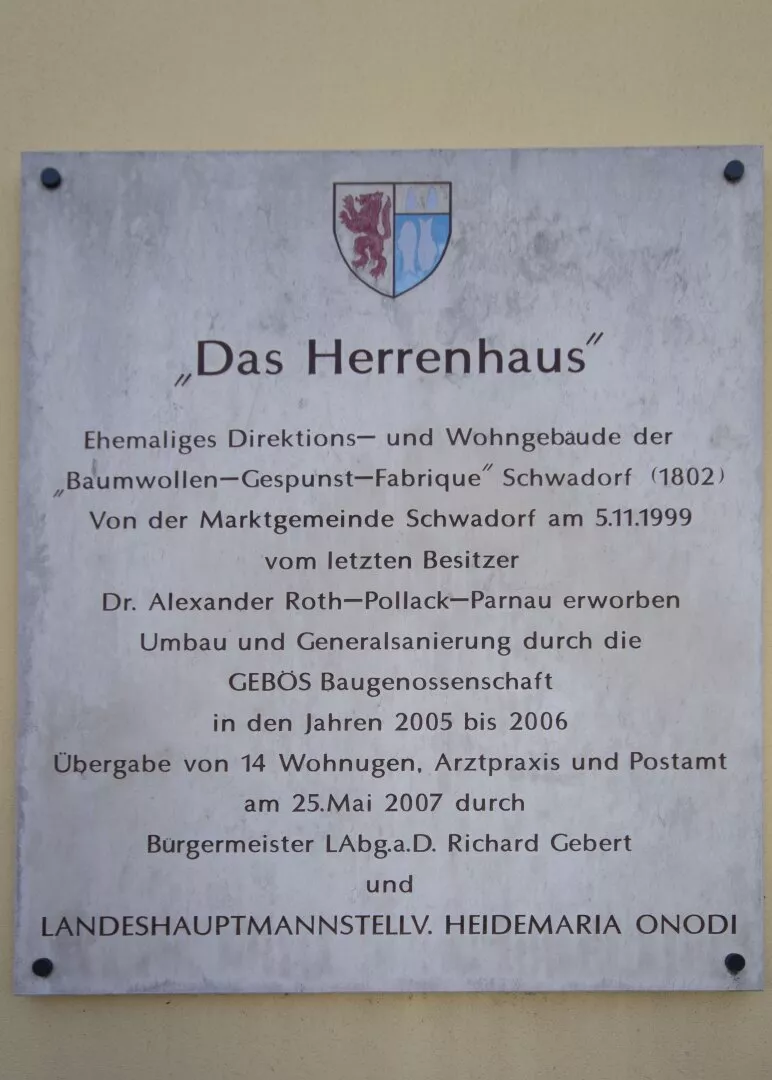 Das historische Herrenhaus wurde 1802 erbaut und in den Jahren 2005-2006 von der gebös liebevoll saniert. Mitten im Zentrum von Schwadorf platziert, erzählt es mit den hohen Räumen und seinem Flair seine eigene Geschichte.