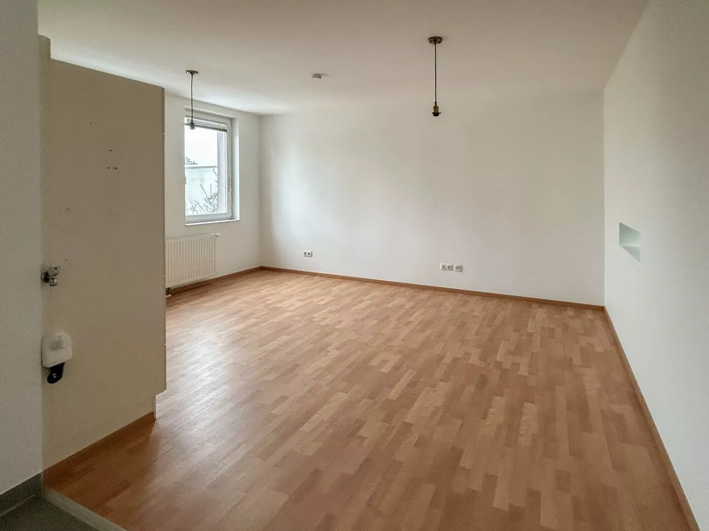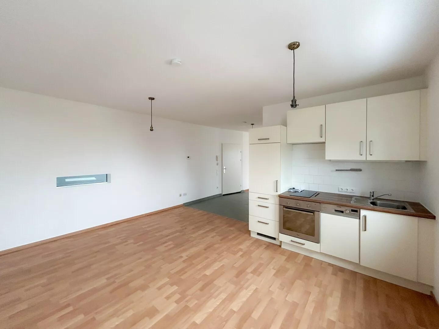 Zur Wohnung gehört eine Küche und ein Einlagerungsraum.