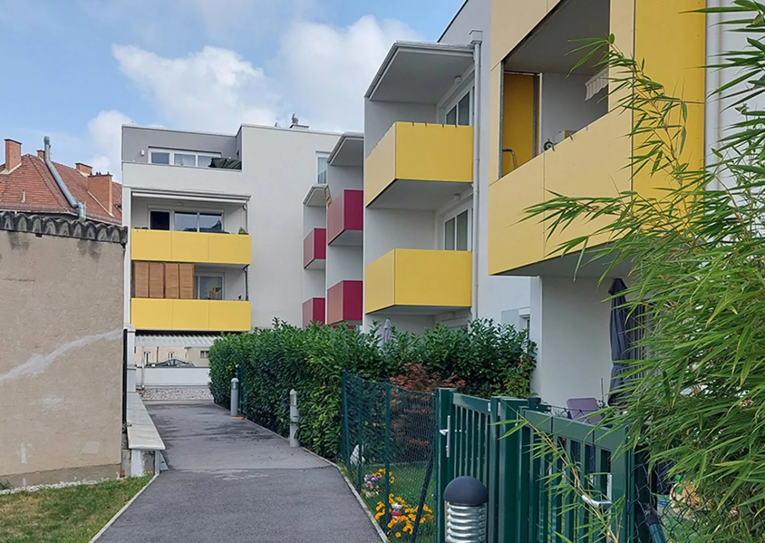 Diese wunderschöne Wohnhausanlage besteht aus 3 Stiegen und insgesamt 84 Wohnungen und liegt sehr zentral in Wr. Neustadt. Auch ein Kinderspielplatz mit Sitzmöglichkeiten ist vorhanden und bietet die Möglichkeit eines geselligen Miteinanders.