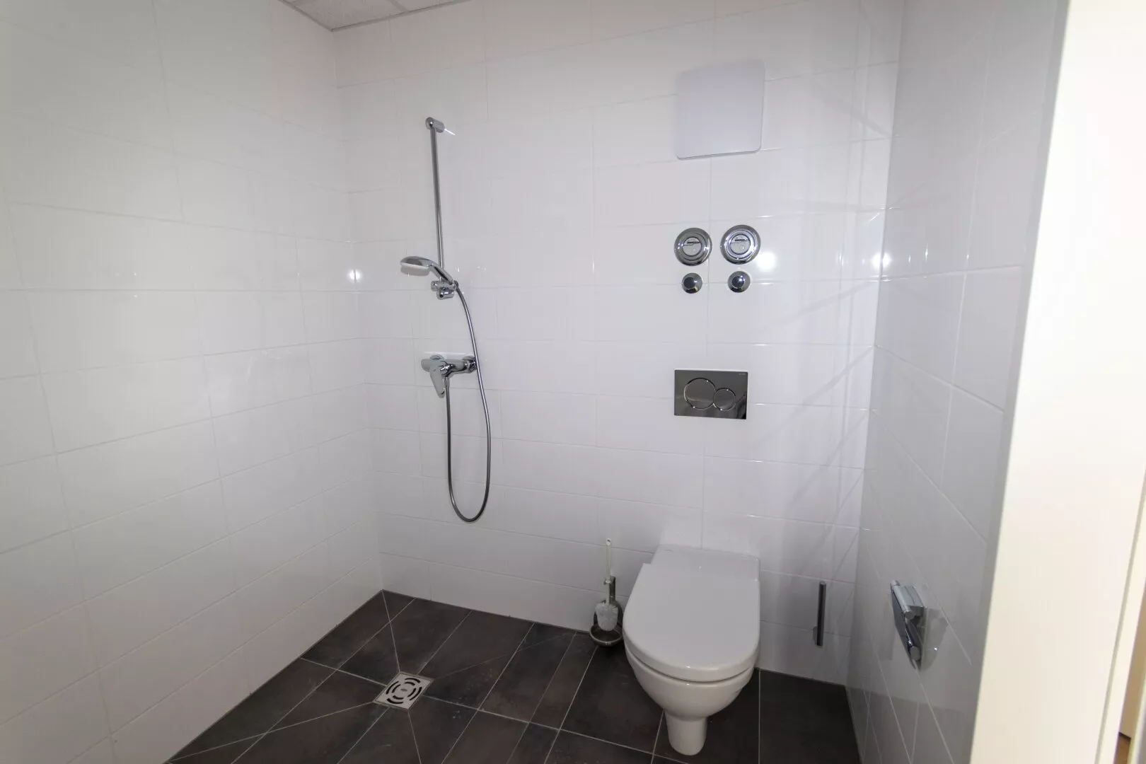 Geheizt wird im Winter mit Fernwärme und im Sommer sorgt die Deckenkühlung über Bauteilaktivierung sowie die 3-fach-isolierverglasten Fenster mit elektrischen Außenraffstore für ein angenehmes Raumklima. Das Bad ist behindertengerecht eingerichtet und verfügt über eine bodenebene Dusche.