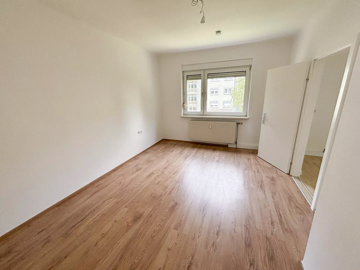 Die Wohnung besteht aus einem Vorraum, einer Küche mit Abstellraum, einem Balkon mit Blick in den Hof, zwei Zimmer und einem Bad mit Dusche und WC. Zur Wohnung gehört auch ein Kellerabteil.