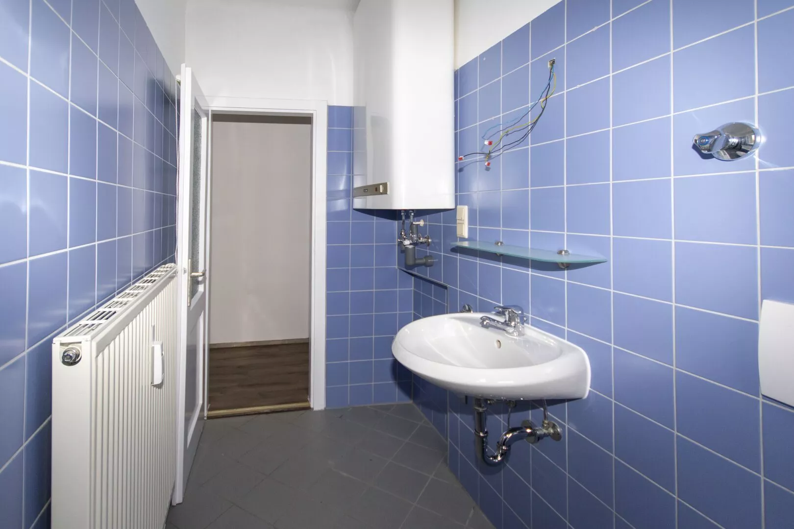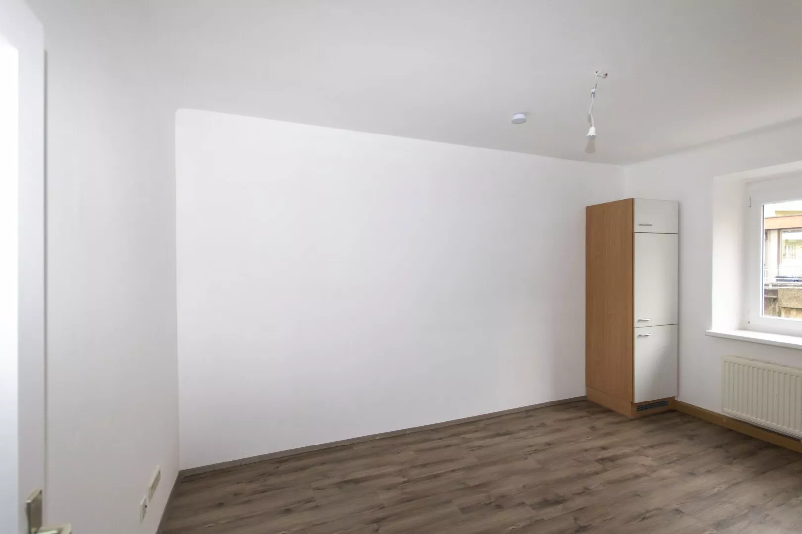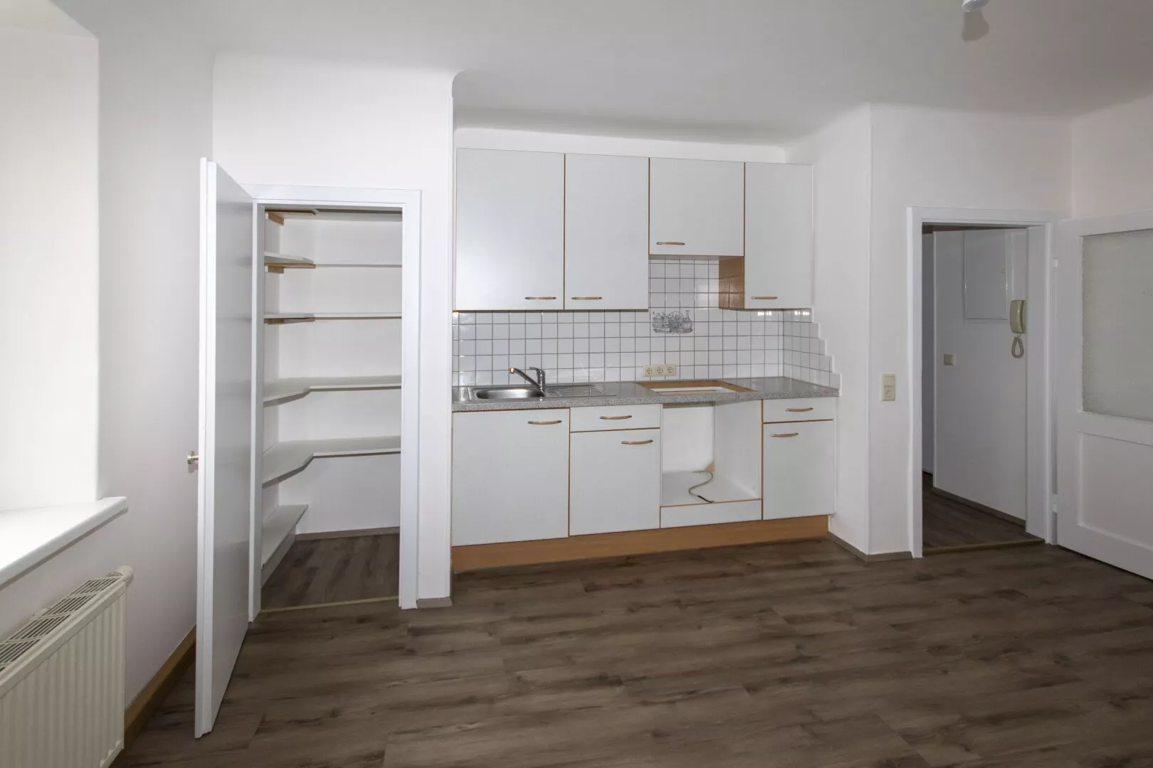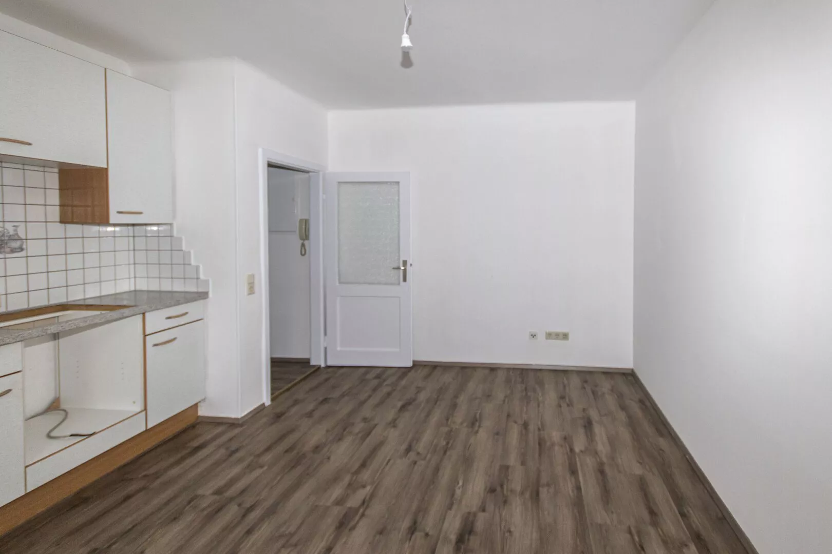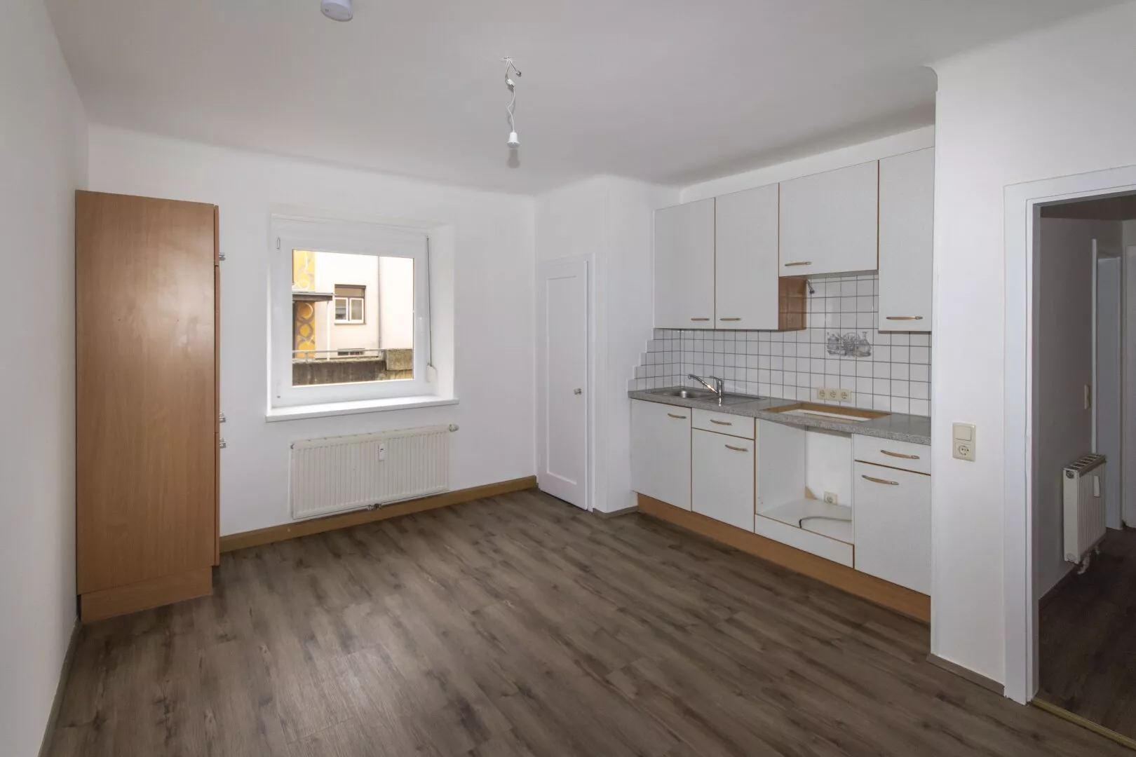 Die Wohnung besteht aus einem Vorraum, einer geräumigen, eingerichteten Küche (ohne Geräte), einem großen Zimmer und einem Tageslicht-Bad mit WC und Badewanne.