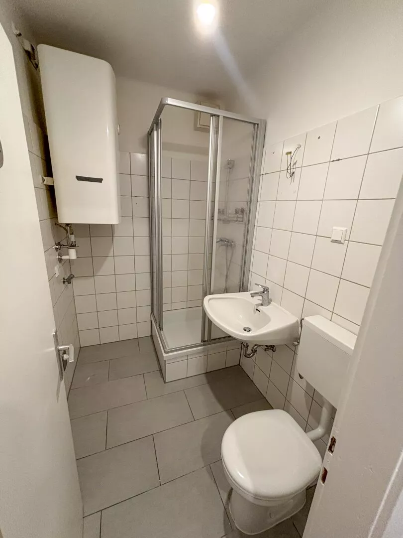 Die Wohnung besteht aus einem Vorraum, einer Küche mit Abstellraum, einem Zimmer und einem Bad mit Dusche und WC. Zur Wohnung gehört auch ein Kellerabteil.