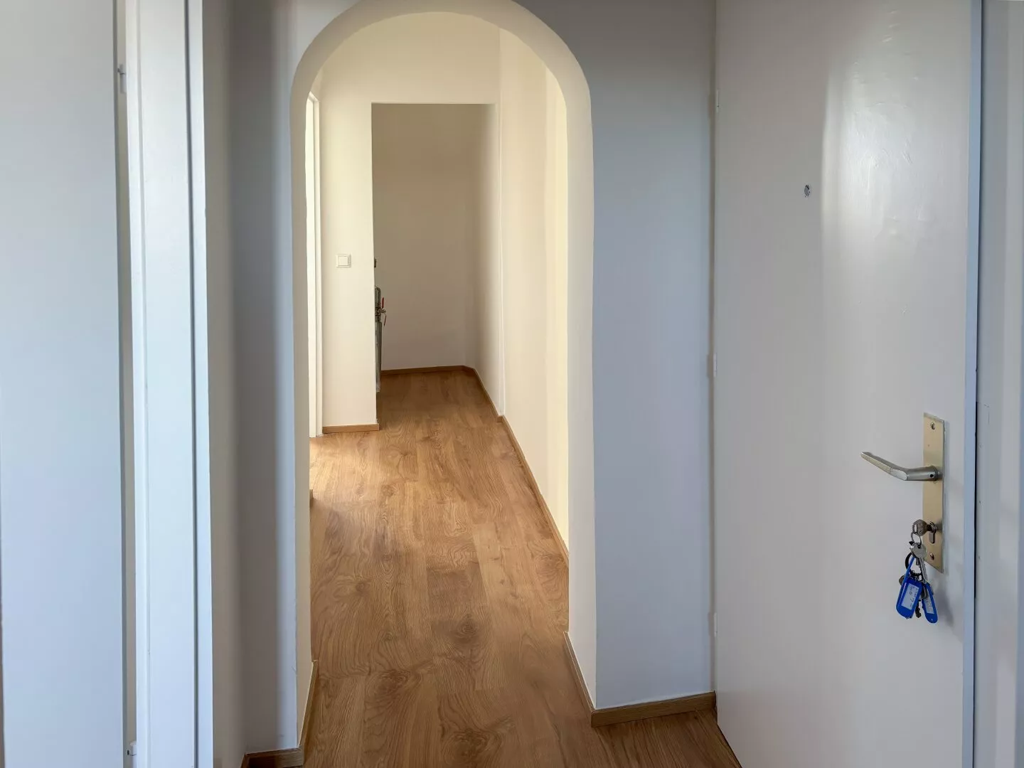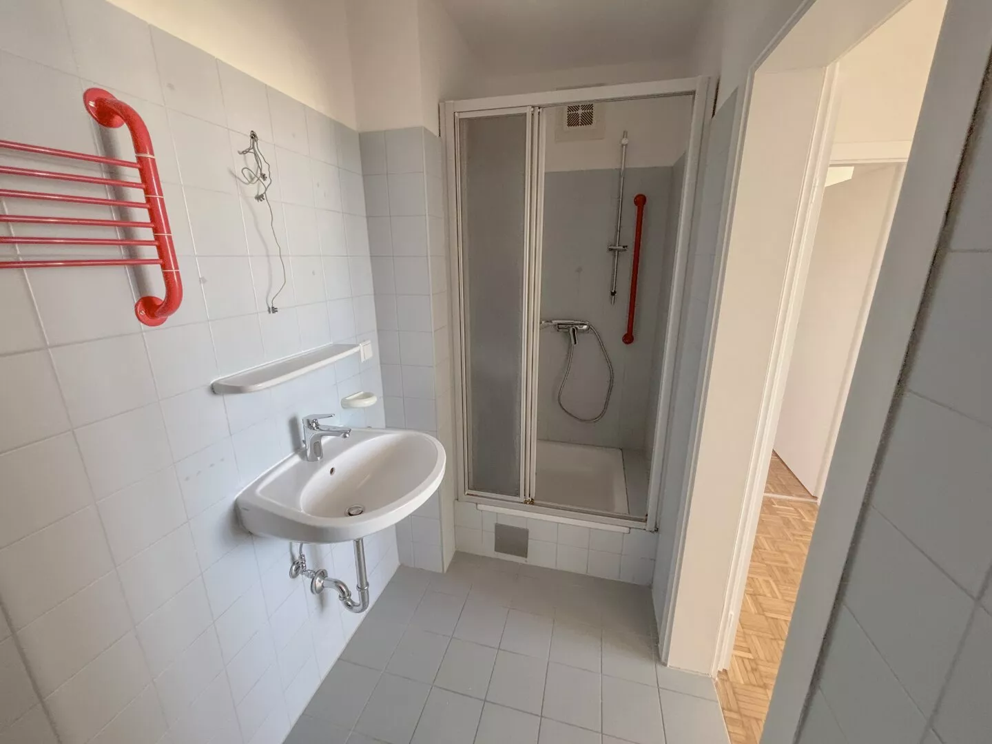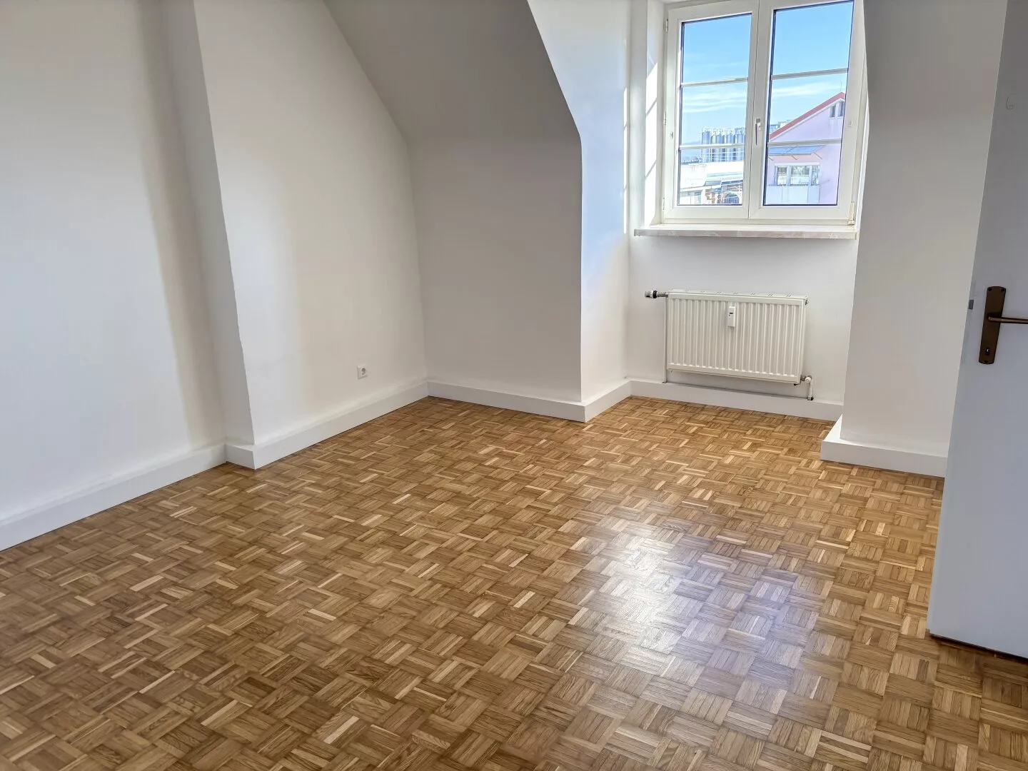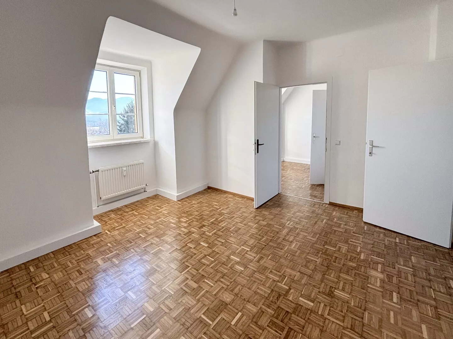 Die Dachgeschoßwohnung besteht aus einem Vorraum, einer Essküche, drei Zimmer, einem Bad mit Dusche und einem getrennten WC mit Fenster.