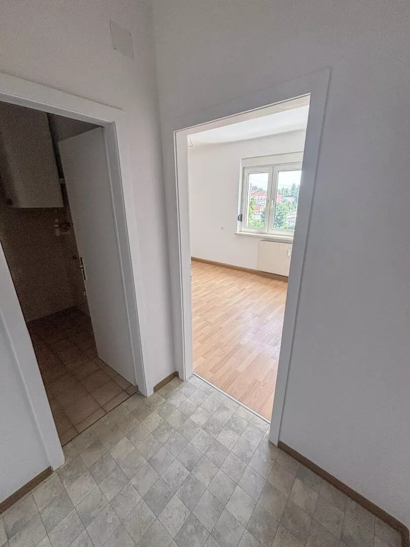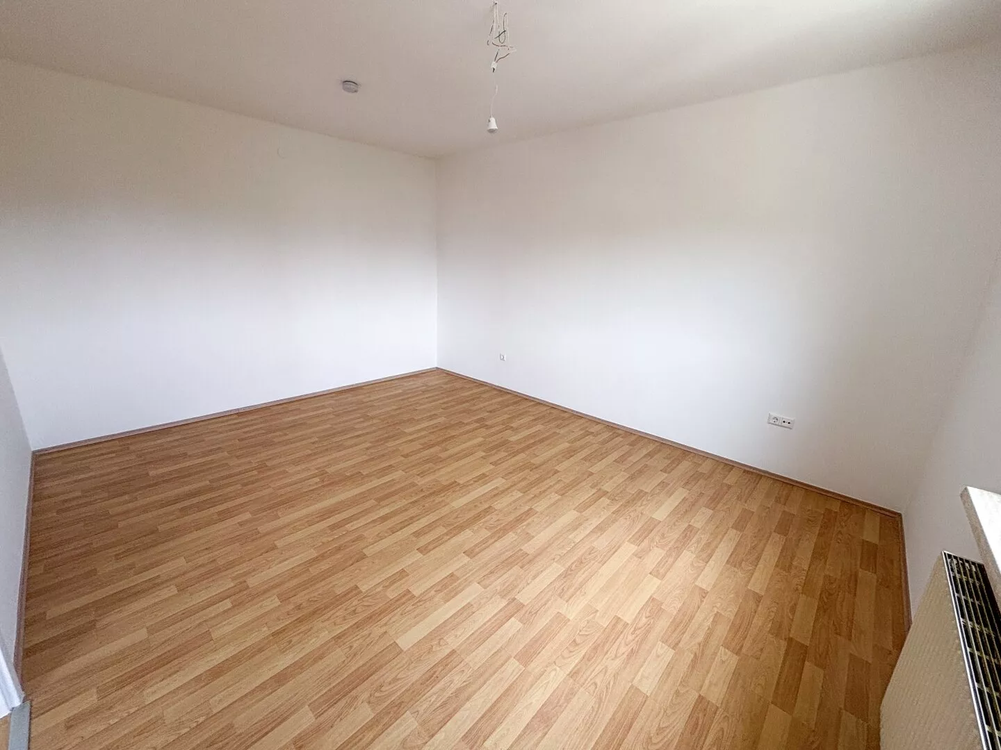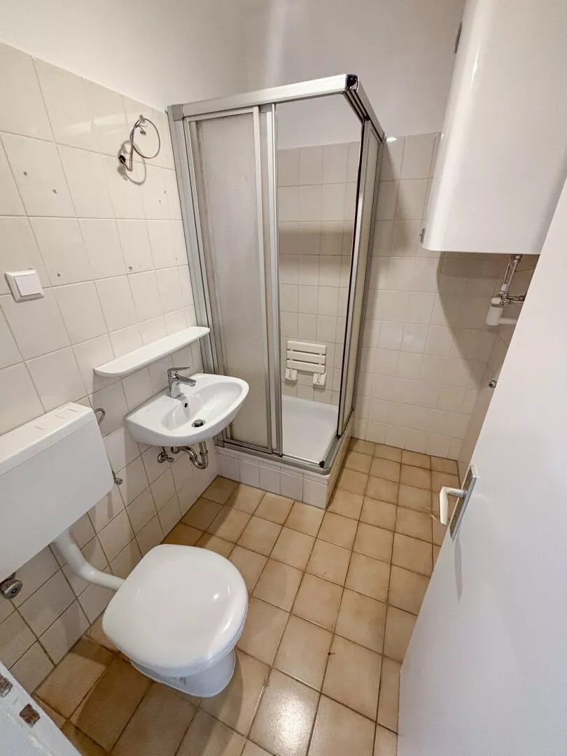 Die Wohnung besteht aus einem Vorraum, einer Küche mit Abstellraum, einem Zimmer und einem Bad mit Dusche und WC. Zur Wohnung gehört auch ein Kellerabteil.